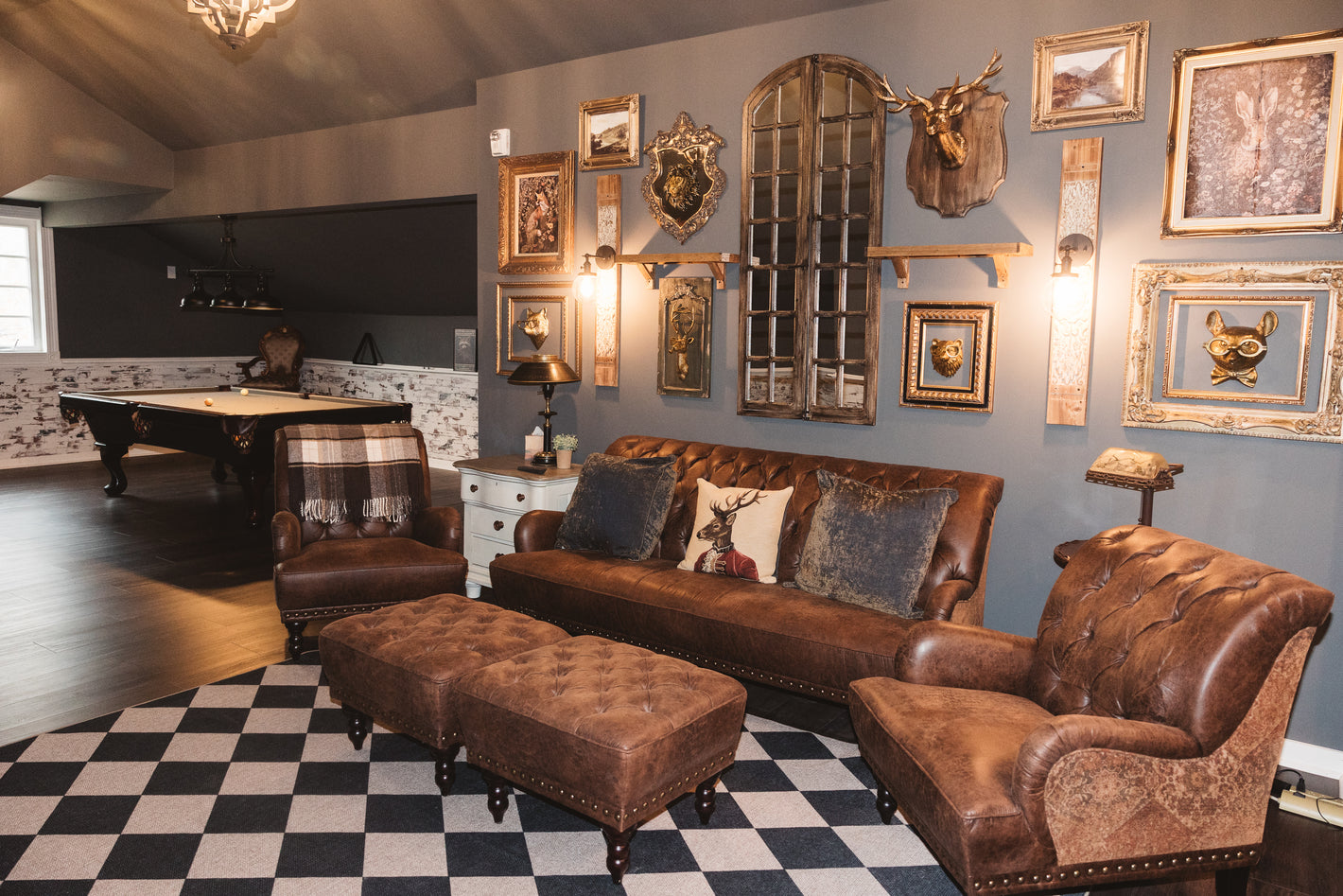 With cozy seating and a fun atmosphere the guys have a special place to play pool or poker and enjoy each other's company before the ceremony begins.